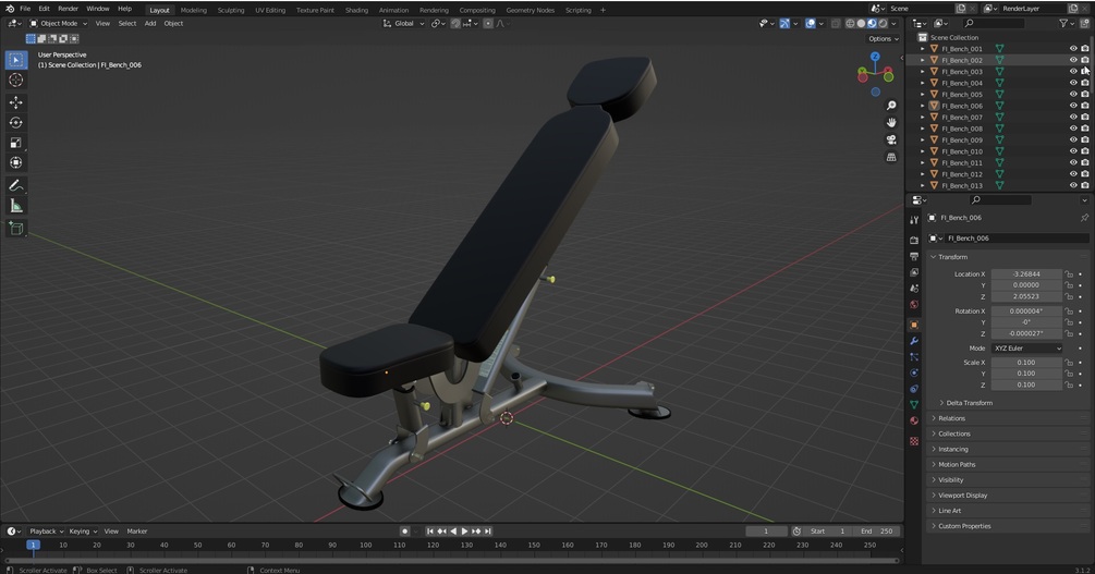 FLAT-INCLINE BENCH - Professional 3D Gym Model
